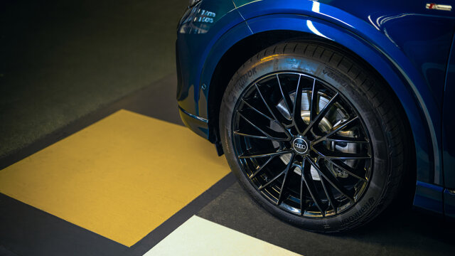 Maak een statement met het Audi stylingpakket: zes zwarte accessoires zoals een zwarte 21 inch lichtmetalen zomerset, e-tron instapverlichting en tal van zwarte details die het sportieve karakter van uw Q4 e-tron extra benadrukken.