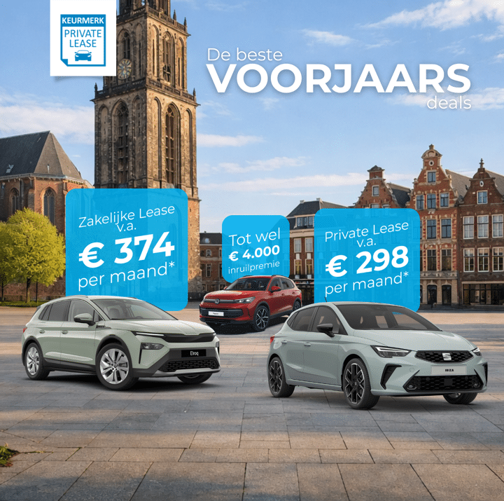 * Century biedt de private leaseproducten aan van Volkswagen Pon Financial Services. Volkswagen Private Lease, SEAT Private Lease, Škoda Private lease. Audi Private Lease, CUPRA Private Lease en XLEasy wordt onder de voorwaarden van het Keurmerk Private Lease aangeboden door Volkswagen Pon Financial Services, handelsnaam van Volkswagen Pon Financial Services B.V., ingeschreven in het Handelsregister onder nummer 20073305. Vanaf tarieven zijn o.b.v. private lease inclusief btw, bij 60 maanden, 5.000 km per jaar, € 500 eigen risico en regio Utrecht. Tarieven kunnen per regio afwijken in verband met provinciale opcenten. Brandstof is niet inbegrepen. Na jaar 1 bedraagt de tussentijdse opzegvergoeding maximaal 40% van de resterende leasetermijnen. Afbeelding kan afwijken van de werkelijkheid. Toetsing en registratie bij BKR te Tiel. De overheid bouwt de korting op de motorrijtuigenbelasting (mrb) voor plug-in hybride en elektrische auto’s in 2026 verder af. - Elektrische auto’s: In 2026 geldt een korting van 30% op de mrb. Vooralsnog geldt deze korting ook in 2027 en 2028, gevolgd door een verdere afbouw naar een korting van 25% in 2029. Vanaf 2030 vervalt de korting op de mrb volledig. - Plug-in hybride auto’s: Vanaf 1 januari 2026 vervalt de korting op de mrb volledig. Door de afbouw van de korting op de mrb stijgt jouw maandelijkse leasebedrag. Voor meer informatie, vraag je dealer of contactpersoon of kijk op de website van de Belastingdienst. De Algemene Voorwaarden zijn hier te vinden.