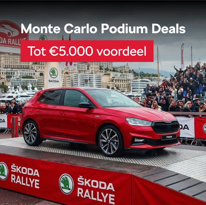 ** Deze actie geldt tot en met 31 maart 2026 en alleen op Monte Carlo uitvoeringen van de Fabia, Scala en Kamiq en is niet te combineren met onze inruilpremies, private lease acties en op zakelijke lease.